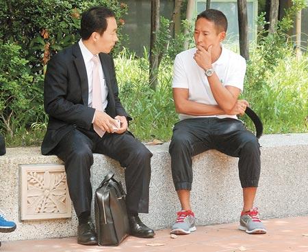 鈕承澤(右)與律師討論案情(圖片來(lái)自臺(tái)灣《中國(guó)時(shí)報(bào)》)