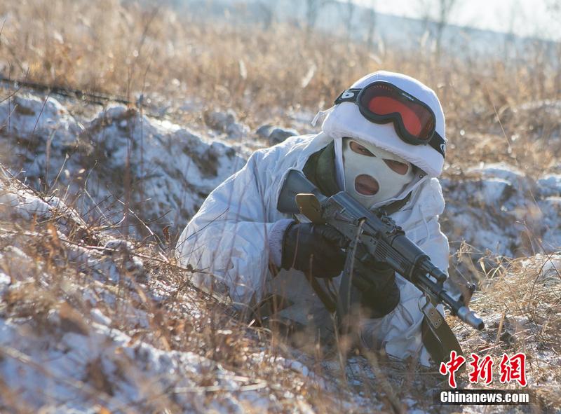 當(dāng)?shù)貢r(shí)間12月2日,俄羅斯遠(yuǎn)東地區(qū),北極步槍隊(duì)的步兵正在極寒地區(qū)開(kāi)展軍事訓(xùn)練。圖片來(lái)源:東方IC 版權(quán)作品 請(qǐng)勿轉(zhuǎn)載