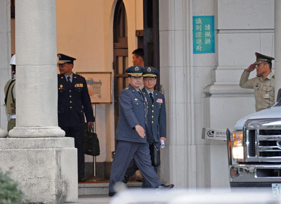 阿帕契案重創(chuàng)臺軍形象,臺防務部門與臺軍高階將領8日向馬英九報告軍紀安全檢討。圖為臺軍高階將領會后離開馬英九辦公室。圖自臺灣“中央社”