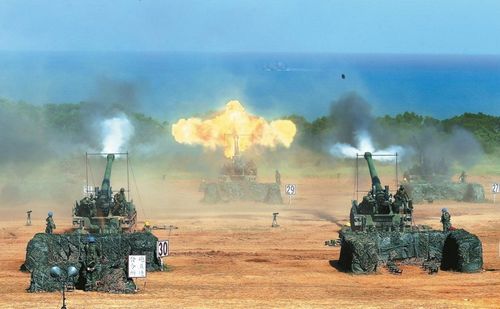 火炮射擊漢光演習(xí)反舟波射擊,3類(lèi)38門(mén)中長(zhǎng)程自走火炮同時(shí)射擊,場(chǎng)面壯觀。來(lái)源:臺(tái)灣《聯(lián)合報(bào)》