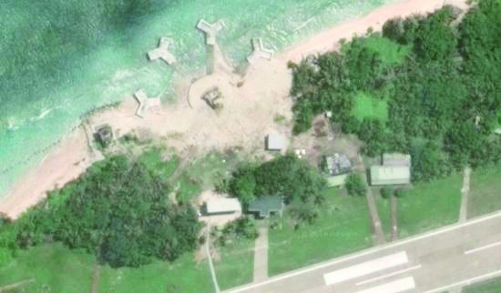 據(jù)臺灣今日新聞網(wǎng)站報道,衛(wèi)星照片顯示,位于太平島西北側(cè)海岸出現(xiàn)一處由4個巨型三爪結(jié)構(gòu),以半月形包圍組合而成的臨海陣地(圖上紅圈處)。從空中俯瞰,這4個三爪型結(jié)構(gòu)看起來像是一種保護(hù)海岸的消波塊,但它們的體積實在太龐大,僅一個結(jié)構(gòu)體就比島上40毫米速射炮陣地的工事還要大上五六倍。盡管臺灣防務(wù)與海巡部門均以機密為由不對外公布,但美國《紐約時報》隨后披露,臺方已要求“谷歌地球”將相關(guān)衛(wèi)星照片加以模糊處理,因此這些設(shè)施很可能是軍事用途。今日新聞網(wǎng)站稱,根據(jù)臺灣“國防部”近期發(fā)布“南沙營區(qū)設(shè)施工程”采購案顯示,臺灣“中科院”正在太平島埋設(shè)“L-波段信號電纜”,并建設(shè)供電機房。由于臺軍現(xiàn)役L波段雷達(dá)通常是指美制AN/TPS-117機動遠(yuǎn)程預(yù)警雷達(dá),最大探測范圍超過300公里,因此太平島上的神秘設(shè)備很可能與這種遠(yuǎn)程雷達(dá)有關(guān)。