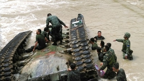 2016年8月16日,臺陸軍八軍團564旅在屏東執(zhí)行聯(lián)勇操演的實彈測考,CM11戰(zhàn)車行經(jīng)便道,疑因天雨路滑,直接翻覆5公尺的網(wǎng)紗溪,戰(zhàn)車炮塔整個沉入水里,只露出履帶,車上5人僅駕駛逃生,1人經(jīng)搶救后恢復心跳。