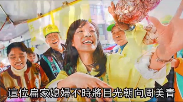 報(bào)道指出,身在綠營(yíng)票倉,但“酷酷嫂”魅力不減,支持群眾搶著握手,周美青不斷握手、合照,深深鞠躬表達(dá)謝意。有攤販送周鳳梨,也有攤販拿蒜高喊:“馬英九凍蒜!”周拜票時(shí)還遇到兩名小弟弟手拿馬吳配的“平安!保瑓s揮舞“英嘉配”的旗幟,引起媒體注意,但他們隨后放下“英嘉配”旗幟并比出馬吳配的2號(hào)手勢(shì),開心與周合影,形成有趣畫面。