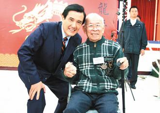 78歲榮光里前里長洪振治行動不便,馬英九彎下腰與他合影。(圖片來自臺灣媒體)