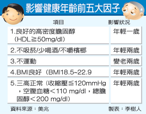 整體來(lái)說(shuō),美兆年度健康檢查報(bào)告顯示,島內(nèi)民眾整體“健康年齡”比實(shí)際年齡年輕1.4歲,女性表現(xiàn)較男性佳,平均年輕2.8歲。如以地區(qū)來(lái)分,北部民眾“健康年齡”最年輕,平均比實(shí)際年齡少1.71歲,其中北部女性表現(xiàn)最佳,“健康年齡”比實(shí)際年齡平均年輕3.08歲。