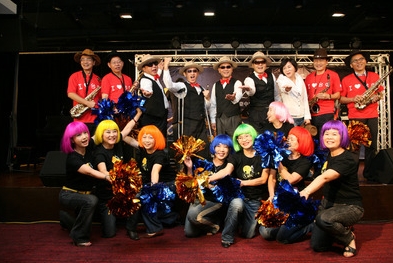 臺中爵士音樂節(jié)將從20日起登場,臺中市長胡志強(后左三)16日帶領(lǐng)3位副市長變身搖滾歌手,載歌載舞為活動暖身。圖片來源:臺灣“中央社”