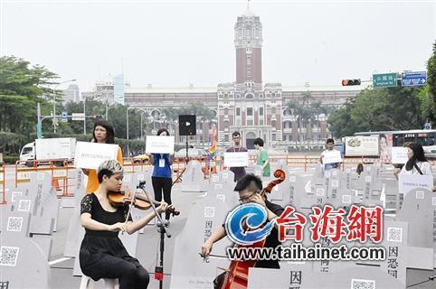 17日是“國際反恐同日”,臺灣同性戀團體在“總統(tǒng)府”前凱達格蘭大道豎立墓碑,紀念因“恐同”而死的同性戀者,呼吁民眾不要因性別認同,對“同志”產(chǎn)生恐懼。