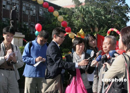 十日是“國際人權(quán)日”,臺師大蔣介石銅像前,校方打出“愛與希望”的大紅橫幅。記者隨機(jī)采訪了幾位途經(jīng)此處的學(xué)生,他們均不贊成拆。一位林姓男同學(xué)說,蔣介石銅像已存在三十多年,融為臺師大校園建置的一部分,如果拆了會“很可惜”。
