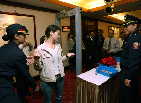 據(jù)臺灣“中時電子報”報道,陳水扁出席活動之前,所有與會人員在會場外大排長龍,等候接受安全檢查。由于陳水扁自爆全家遭恐嚇,安檢規(guī)格等級提高,要求所有來賓不但要主動打開背包,還要脫下外套給安檢人員驗看,強制接受安檢。