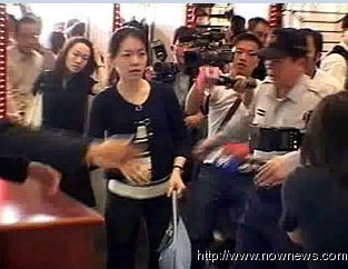 陳幸妤發(fā)飆大吼,指責(zé)媒體攝影機(jī)打到頭。(臺(tái)灣TVBS)