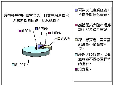 從臺(tái)灣《中時(shí)電子報(bào)》最新民調(diào)結(jié)果看,絕大多數(shù)臺(tái)灣網(wǎng)友都認(rèn)為,今天臺(tái)灣民視與對(duì)岸機(jī)構(gòu)合拍電視劇一事,問(wèn)題并不出在臺(tái)灣民視本身,而是民進(jìn)黨兩岸政策搖擺不定、缺乏明確定義,才造成今天進(jìn)退失據(jù)的下場(chǎng)。