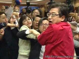 今年4月22日,邱議瑩掌摑李慶華后雙方發(fā)生拉扯。 圖片來源:臺灣“今日新聞”