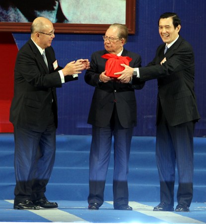 馬英九從吳伯雄手中接過(guò)黨主席印信。(圖片來(lái)源 臺(tái)灣“中央社”)