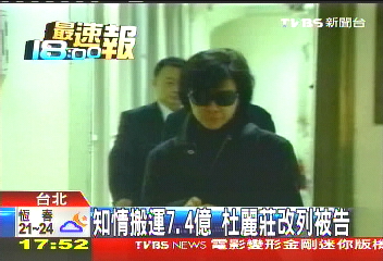 臺(tái)檢方今天增加杜麗莊為陳水扁洗錢案被告。(圖片來源:臺(tái)灣TVBS電視臺(tái))