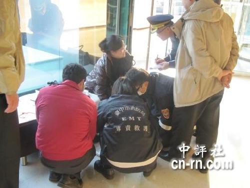 楊云蘇跌倒后,;鶗⒓创螂娫捊o消防局,幾分鐘之內(nèi)就趕到協(xié)助處理。(中評社 康子仁攝)