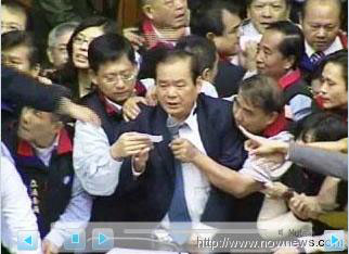 主持議事,臺灣“立法院副院長”曾永權(quán)眼鏡被扯掉。圖片來源:臺灣“今日新聞網(wǎng)”