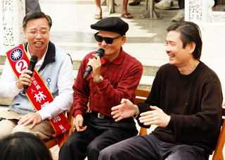 為配合農(nóng)歷年節(jié)喜慶氛圍,國民黨別出心裁請(qǐng)來本土歌手阿吉仔和李炳輝等人,到各鄉(xiāng)鎮(zhèn)廟口開唱,上午第一場選在大票倉民雄鄉(xiāng)展開,金溥聰和國民黨副主席、嘉義市長黃敏惠全都到場力挺,在動(dòng)人歌聲柔化下,原本嚴(yán)肅的選舉造勢(shì)場合,變成無比的歡樂輕松,現(xiàn)場笑聲不斷。
