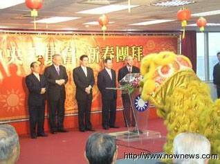 國民黨團(tuán)拜不僅請來祥獅獻(xiàn)瑞,馬英九、吳伯雄還特別致詞祝賀全體國民黨黨員新春快樂。 來源:臺灣“今日新聞網(wǎng)”