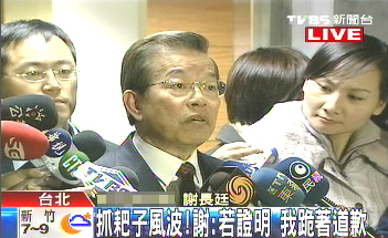 謝長(zhǎng)廷今天出面為自己辯駁,期間似乎眼泛淚光,他強(qiáng)調(diào):“假如有人能夠證明這個(gè)秘密有泄露(是我泄露的),有關(guān)單位有掌握這個(gè)秘密,如果施先生(施明德)能夠證明,我跪著跟他道歉。”(陳佳慧)