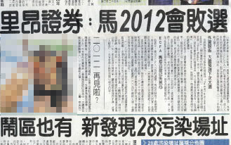 臺灣《自由時(shí)報(bào)》24日報(bào)道里昂證券指稱“馬英九2012年會敗選”,里昂證券昨天緊急發(fā)表聲明澄清,《自由時(shí)報(bào)》報(bào)道內(nèi)容不實(shí),與報(bào)告內(nèi)容差別甚大。 來源:臺灣《聯(lián)合報(bào)》
