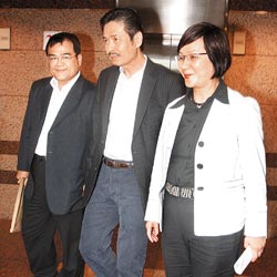 藍營不分區(qū)民代羅淑蕾(右)經(jīng)常在媒體麻辣發(fā)言,引發(fā)國民黨內(nèi)基層反彈,國民黨秘書長金溥聰(中)29日傍晚約見羅,再與國民黨政策會執(zhí)行長林益世(左)三方會面后,金表示未來會定期和不分區(qū)民意代表交換意見。圖片來源:臺灣《中國時報》