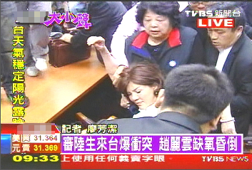 臺(tái)“立院”全武行,藍(lán)營(yíng)民代趙麗云(中)昏倒送醫(yī)。圖片來源:臺(tái)灣TVBS電視臺(tái)
