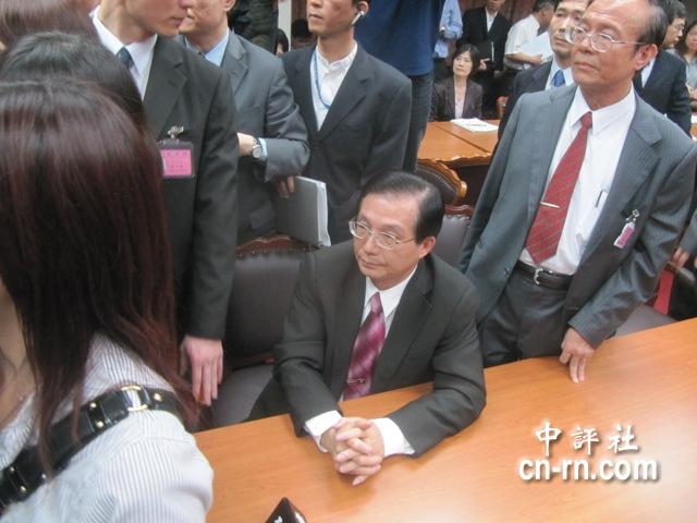 藍(lán)綠民代爆發(fā)好幾波沖突,臺(tái)“教育部長”吳清基只能尷尬坐在一旁。(中評(píng)社 康子仁攝)