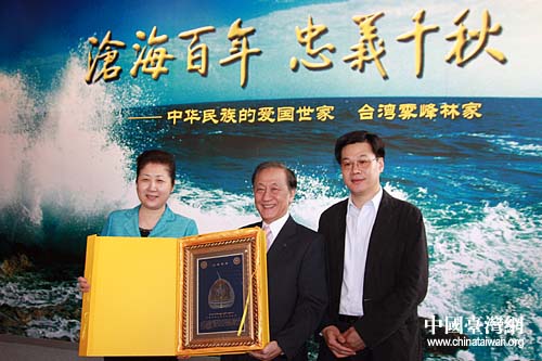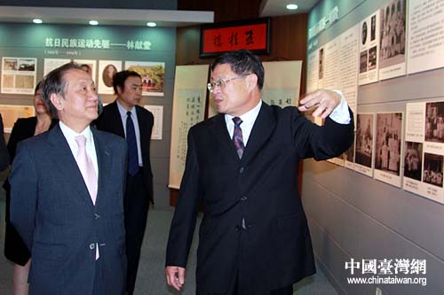 林為民為介紹郁慕明進行講解。(中國臺灣網 董潔 攝)