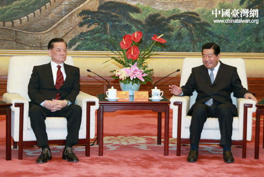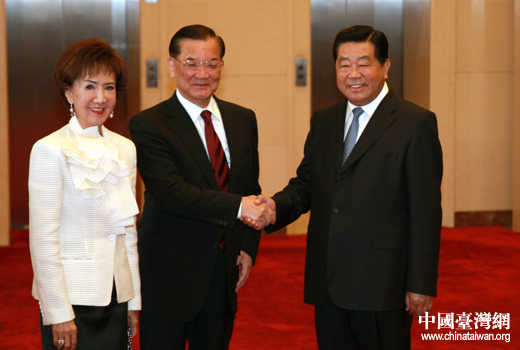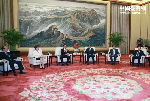 5月7日下午,中共中央政治局常委、全國政協(xié)主席賈慶林在北京人民大會堂會見了前來大陸參訪的中國國民黨榮譽(yù)主席連戰(zhàn)一行。(中國臺灣網(wǎng) 田云鵬 攝)