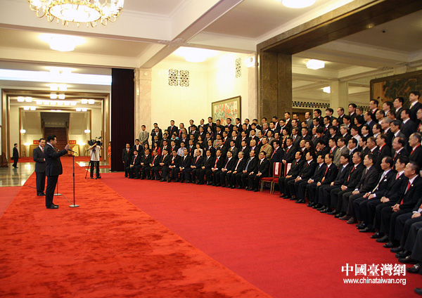賈慶林會見全國臺企聯(lián)第二屆會員代表。(中國臺灣網(wǎng) 鐘寶華 攝)