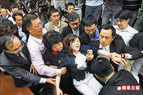 中國(guó)臺(tái)灣網(wǎng)5月19日消息 據(jù)臺(tái)灣TVBS電視臺(tái)報(bào)道,臺(tái)灣“立法院”一開(kāi)會(huì),就有議事人員逐字記錄民意代表發(fā)言和法案審理的情形。只是上個(gè)月連續(xù)2次,藍(lán)、綠雙方為了“陸生三法”大打出手,連記錄會(huì)議日程的議事小姐都無(wú)端受牽連。觀察這2次的“立院”議事記錄,意外發(fā)現(xiàn)打架現(xiàn)場(chǎng)全都沒(méi)有文字?jǐn)⑹,反而是?jiǎn)單地以“現(xiàn)場(chǎng)一片混亂”帶過(guò),重復(fù)4次,就直接紀(jì)錄“散會(huì)”了。