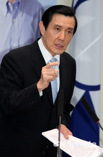 5月19日下午,中國(guó)國(guó)民黨在臺(tái)北召開中常會(huì),聽取執(zhí)政兩周年施政報(bào)告。圖為主持中常會(huì)的國(guó)民黨主席馬英九在作總結(jié)發(fā)言。 圖片來源:中新網(wǎng)