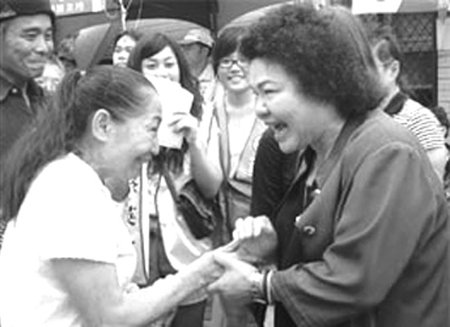 所謂“五大都”選舉,就是臺北市、新北市(原臺北縣)、大臺中(臺中市、臺中縣合并)、大臺南(臺南市、臺南縣合并)和大高雄(高雄市、高雄縣合并)的五個“直轄市長”選舉。大高雄地區(qū)向來是民進黨的大本營,而此次民進黨推出的候選人陳菊就是現(xiàn)任高雄市長,優(yōu)勢明顯。盡管如此,國民黨并沒放棄,派出同是女將的黃昭順應戰(zhàn)。但選舉造勢才剛剛熱身,兩位女士的手已經(jīng)有些吃不消了。