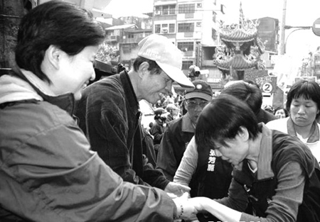 手、腰受了傷,咬咬牙或許還能堅持下來,但有時候選舉是要拿命豁出去的。2006年底,臺中市長胡志強偕夫人邵曉鈴赴高雄為國民黨籍市長候選人黃俊英造勢,誰想返回臺中時發(fā)生嚴重車禍,邵曉鈴雖然最后闖過鬼門關,但左臂被截肢,腦部也傷得很厲害。而臺灣政壇另一起轟動一時的車禍,當然要算1985年陳水扁妻子吳淑珍遭遇的車禍。當時陳水扁參選臺南縣長失利,在謝票過程途中,吳淑珍遭貨車撞傷,導致下半身永久癱瘓,胸部以下喪失知覺。而“立委”選舉中,候選人遭黑道上門要挾、收到子彈等事件也常有發(fā)生。