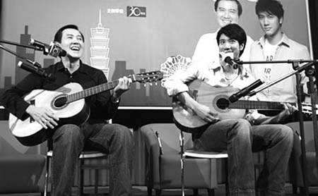 2008年臺灣“大選”時,參選人馬英九(左)如同參加選秀般“展示才藝”