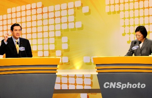 4月25日下午,備受臺(tái)灣輿論關(guān)注的“雙英”辯論會(huì)在臺(tái)北登場(chǎng),馬英九(左)堅(jiān)稱兩岸商簽ECFA必要而且緊迫,雙方攻防激烈。圖右為民進(jìn)黨主席蔡英文。 中新社發(fā) 董會(huì)峰 攝