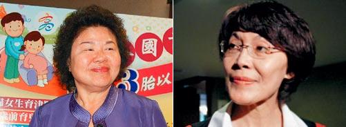 陳菊(左)習(xí)慣一襲罩衫、簡單內(nèi)搭、戴一條單墜項練,頂著細(xì)卷的頭發(fā),打出“花媽”名號!白儼l(fā)圖強(qiáng)”的黃昭順(右)昨天也改變造型,剪掉中長發(fā)、改換短發(fā),展現(xiàn)親切風(fēng)格。圖片來源:臺灣《聯(lián)合報》