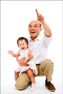 民進(jìn)黨臺北市長提名人蘇貞昌利用空檔拍攝競選定裝照,他這波定裝照主打家庭溫馨牌,找來外孫女一起入鏡。圖片來源:臺灣自由時(shí)報(bào)
