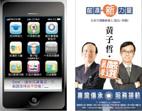 市議員參選人黃子哲與同黨籍“立委”蔣孝嚴(yán)合照當(dāng)文宣,卻被檢舉違規(guī),讓他頗為無(wú)奈。 圖片來(lái)源:臺(tái)灣《聯(lián)合報(bào)》