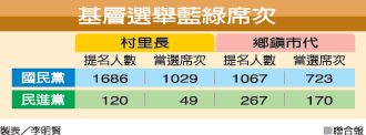 國民黨宣稱大勝,民進(jìn)黨也有斬獲。昨晚初步統(tǒng)計(jì)選舉結(jié)果,民進(jìn)黨村里長(zhǎng)部分由44席小幅成長(zhǎng)為49席,鄉(xiāng)鎮(zhèn)市民代表則由83席大幅成長(zhǎng)為170席。黨主席蔡英文強(qiáng)調(diào),民進(jìn)黨席次雖然有進(jìn)步,但還是會(huì)謙虛以對(duì),繼續(xù)傾聽人民聲音。民進(jìn)黨發(fā)言人蔡其昌則批評(píng),此次選舉賄選還是時(shí)有所聞,距“干凈選風(fēng)”還有很大距離,如果選風(fēng)不能改善,地方政治要清明很困難。