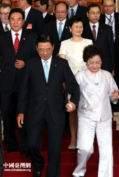 6月30日,兩岸兩會第五次領(lǐng)導(dǎo)人會談圓滿落幕, 在海協(xié)會會長陳云林等人的陪同下,臺灣;鶗麻L江丙坤攜夫人走出下榻酒店,前往機(jī)場。(中國臺灣網(wǎng) 鐘寶華 攝)