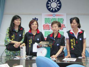 國民黨“立委”現(xiàn)場(chǎng)稱重計(jì)時(shí)器重量。 圖片來源:臺(tái)灣“中廣新聞”