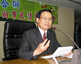臺南市長許添財昨天舉辦市民請益座談,對于未來動向仍不愿意透露,但對未來的市政卻侃侃而談。圖片來源:聯(lián)合報