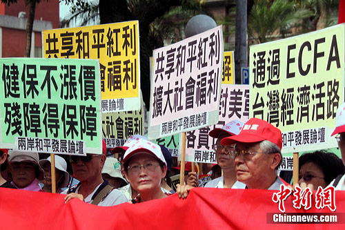 8月18日,由19個民間團(tuán)體組成的“兩岸和平發(fā)展論壇”發(fā)起請愿活動,支持ECFA打開臺灣經(jīng)濟(jì)活路,并要求執(zhí)政當(dāng)局停止對美軍購,以推行民生福利政策,深化兩岸政治互信。中新社記者 劉舒凌 攝