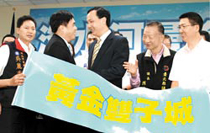 據(jù)臺灣《中國時報》報道,臺北市長郝龍斌與國民黨新北市長參選人朱立倫5日大陣仗召開記者會,公布“黃金雙子城--淡水河曼哈頓計劃”廣告片,這是在臺北市“花風(fēng)暴”之后,郝、朱兩人首度同臺為選情造勢。郝、朱拿著“黃金雙子城、團(tuán)結(jié)一定成”的布條,表達(dá)未來仍將持續(xù)推動雙城合作的決心。