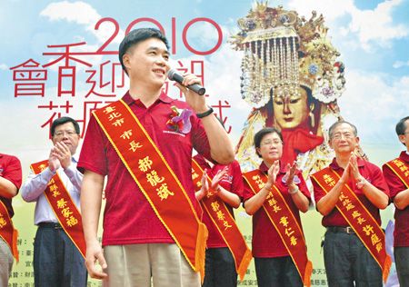 臺(tái)北市長郝龍斌(前)12日出席媽祖文化節(jié)活動(dòng),他表示相信神明會(huì)保佑認(rèn)真做好事情、清白的人。來源:臺(tái)灣《中國時(shí)報(bào)》