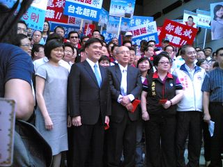 年底臺(tái)北市長(zhǎng)選舉,身陷“花博風(fēng)暴”的臺(tái)北市長(zhǎng)郝龍斌到市選委會(huì)登記參選。國(guó)民黨黨中央包括國(guó)民黨前主席吳伯雄、副主席詹春柏、秘書(shū)長(zhǎng)特別顧問(wèn)趙少康、前悠游卡董事長(zhǎng)連勝文、國(guó)民黨籍“立委”蔣乃辛、鄭麗文、蔡正元等人,到市選委會(huì)幫郝龍斌加油打氣。對(duì)于各界的支持及幫助,郝龍斌說(shuō),他的勝選信心大增,透過(guò)國(guó)民黨中央的協(xié)助,他更有信心會(huì)贏。(中國(guó)臺(tái)灣網(wǎng) 孫金誠(chéng))