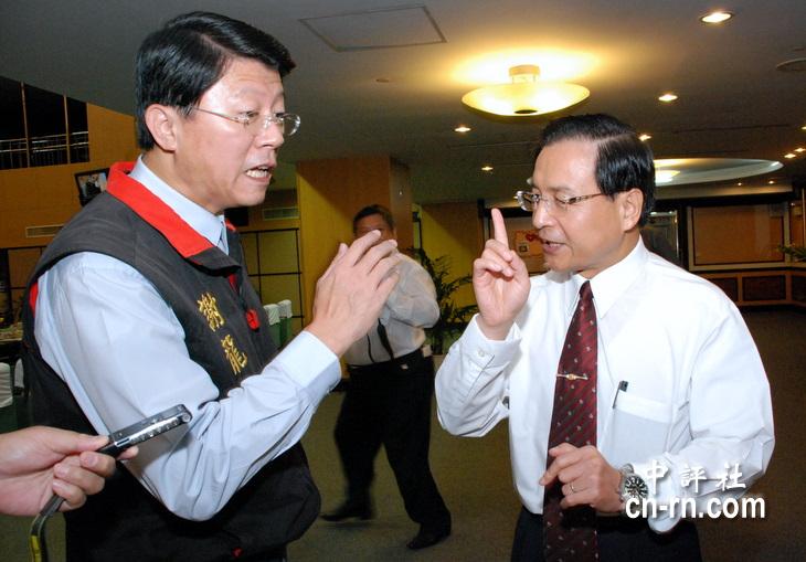 國(guó)民黨中常委、臺(tái)南市議員謝龍介(左)昨天預(yù)言,許添財(cái)將不會(huì)投入市長(zhǎng)選舉,但會(huì)籌備參選“立委”。(中評(píng)社資料照片)