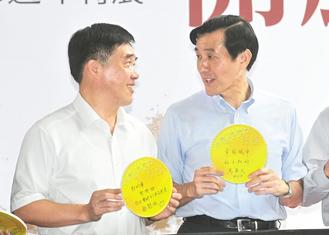 中國(guó)臺(tái)灣網(wǎng)9月18日消息 據(jù)臺(tái)灣“中央社”報(bào)道,馬英九今天肯定臺(tái)北市長(zhǎng)郝龍斌的市政成績(jī),寫(xiě)下“幸福城市,好上加好”的祈福文字。郝龍斌則表示,花博是把臺(tái)灣花卉、環(huán)?萍寂c文化創(chuàng)意向全世界展示的舞臺(tái)。