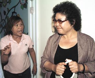 陳菊22日上午到高雄市三民區(qū)本和里災(zāi)區(qū)巡視,聽(tīng)到災(zāi)民抱怨住家損失嚴(yán)重時(shí),表情凝重。 來(lái)源:臺(tái)灣《聯(lián)合報(bào)》